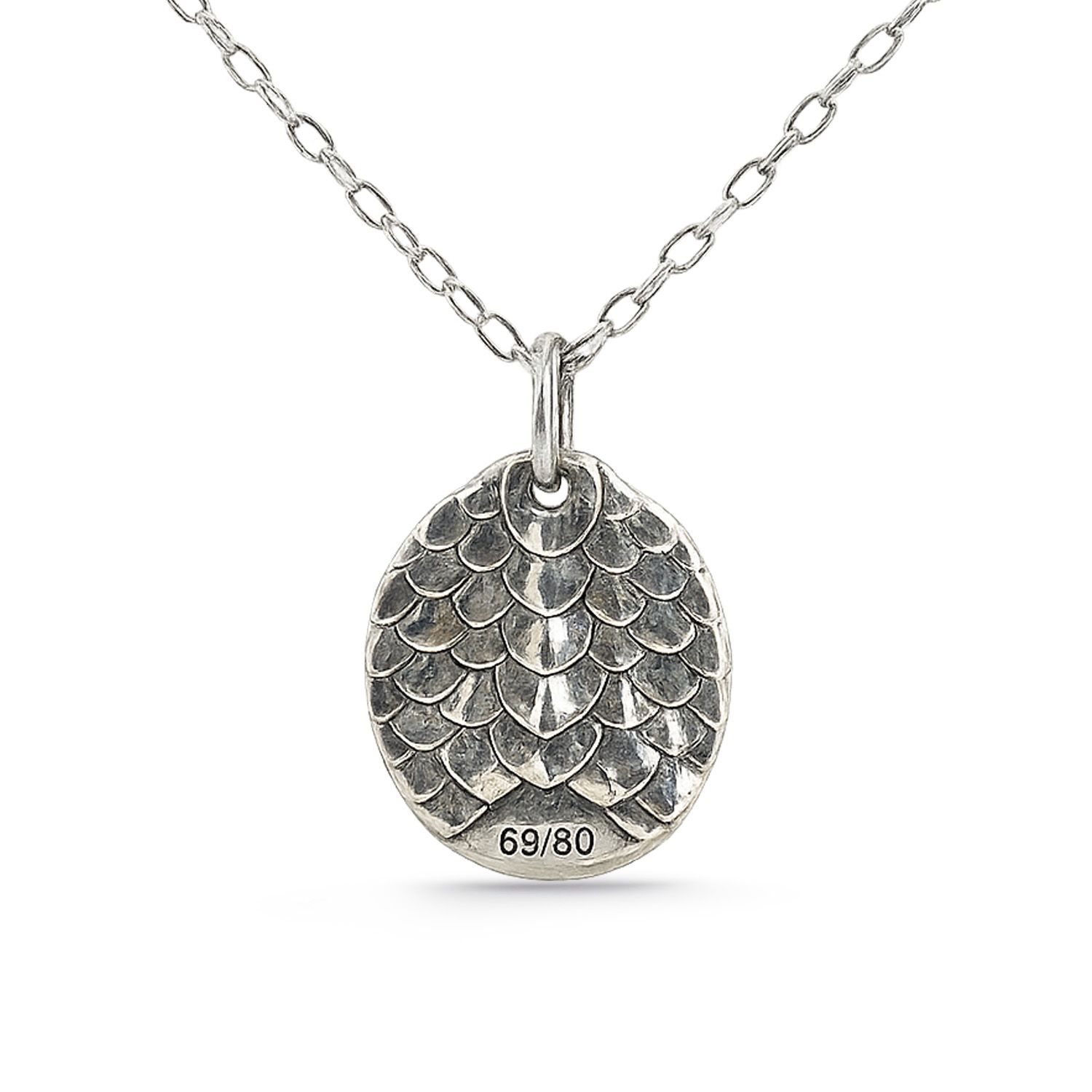 The Silver Rose es un colgante reversible fabricado artesanalmente en los talleres de Joyería Nicols, firma centenaria con taller propio y referente en joyería artesanal en España. Por un lado, escamas de dragón —fuerza, protección, origen. Por el otro, una rosa —amor, belleza, tradición. Dos símbolos que dialogan entre sí y que encapsulan el corazón de la historia.